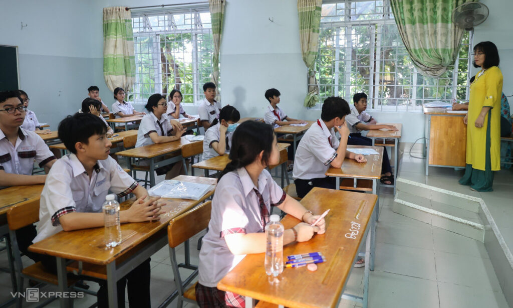 Học sinh thi vào lớp 10 công lập tại trường THCS Trần Quốc Toản, TP Thủ Đức, tháng 6/2024. Ảnh: Quỳnh Trần
