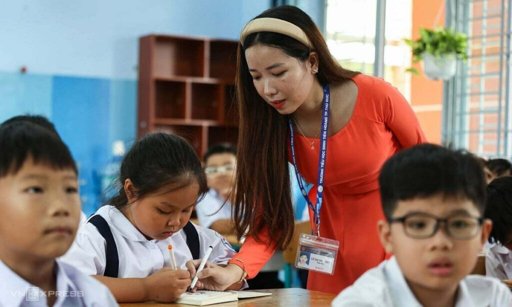 Giáo viên trường Tiểu học Đinh Tiên Hoàng, TP HCM, tháng 9/2023. Ảnh: Quỳnh Trần