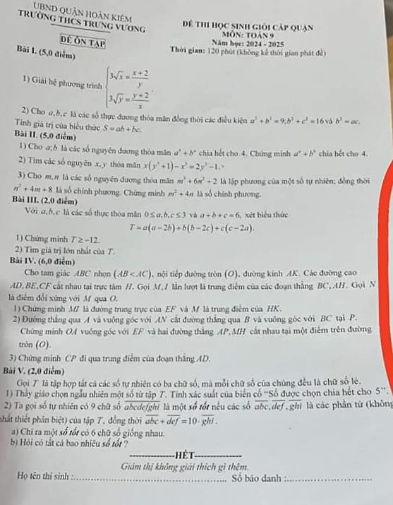 Đề thi học sinh giỏi Toán ngày 29/10 của quận Hai Bà Trưng và đề ôn tập được cho là của trường THCS Trưng Vương, quận Hoàn Kiếm hôm 25/10.