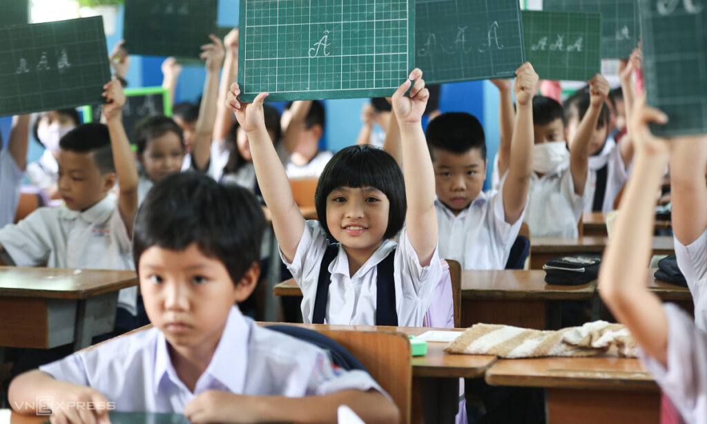 Học sinh và giáo viên trường tiểu học Đinh Tiên Hoàng, TP Thủ Đức, tháng 9/2023. Ảnh: Quỳnh Trần