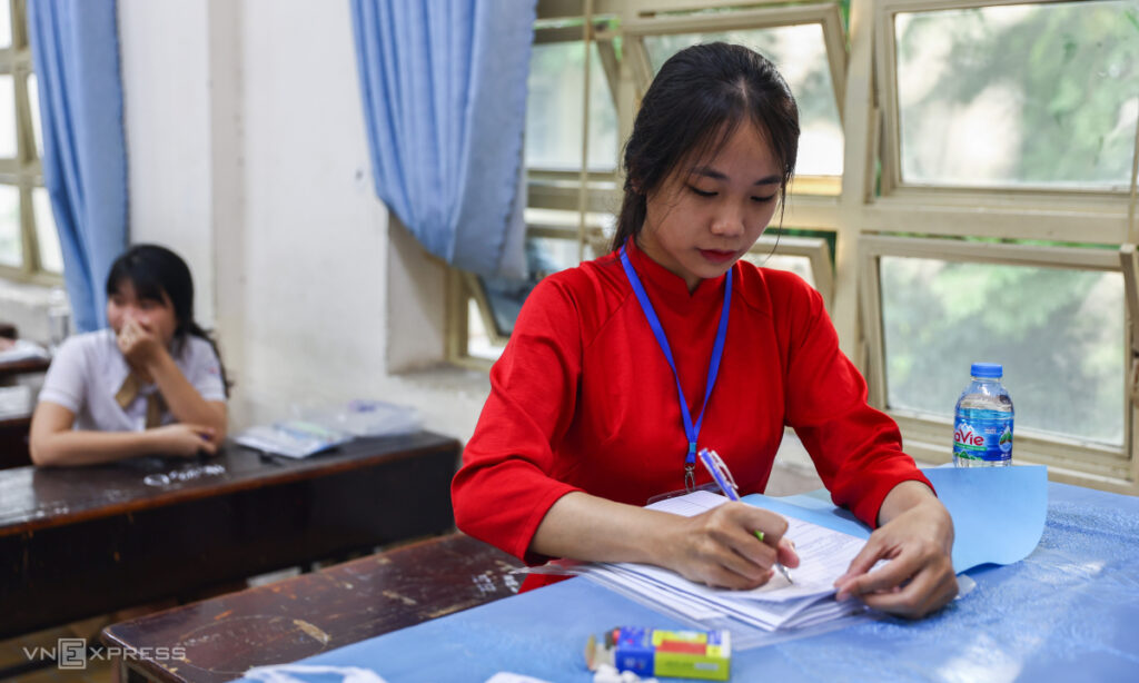 Giám thị, giáo viên coi thi lớp 10 công lập tại THCS Hoa Lư, TP HCM, tháng 6/2025. Ảnh: Quỳnh Trần