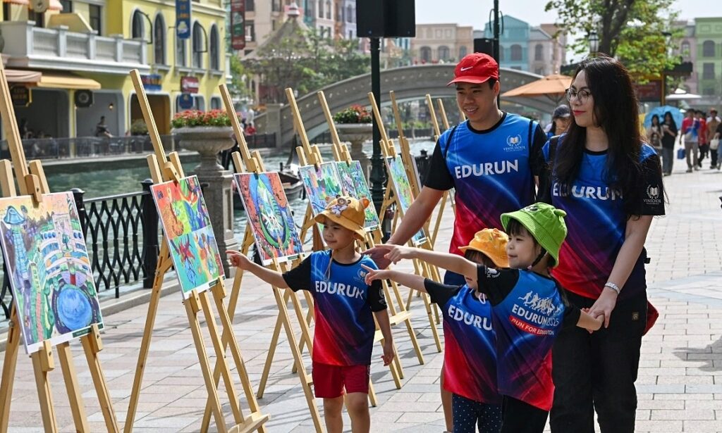 Các tác phẩm tranh vẽ từ cuộc thi “Gửi Tương Lai Xanh 2050” mùa 1 được giới thiệu trưng bày tại sự kiện “Ngày Hội Xanh 2025” do Vingroup tổ chức vào tháng 3. Ảnh: QVTLX