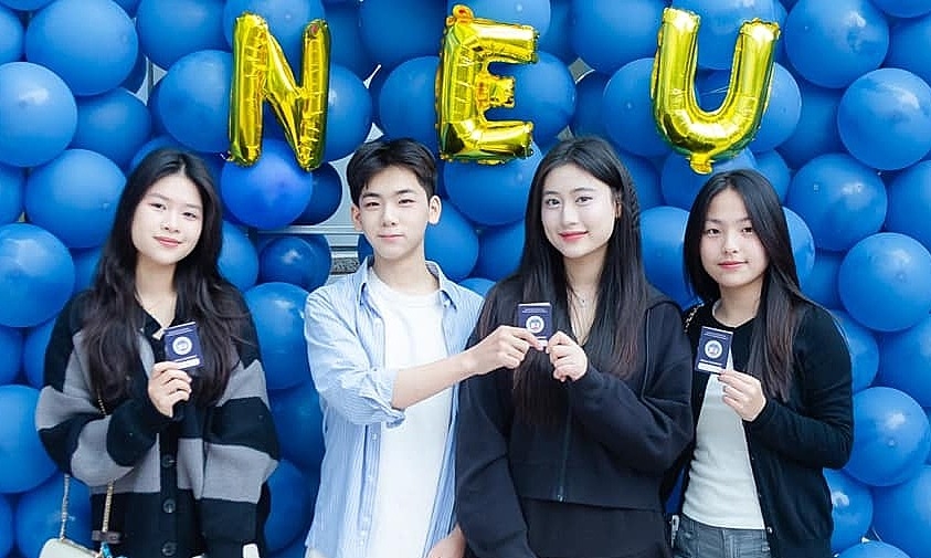Học sinh tham gia trải nghiệm “Một ngày làm sinh viên Kinh tế Quốc dân”, tháng 3/2025. Ảnh: NEU