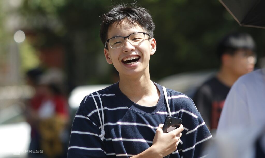 Thí sinh vui vẻ sau khi hoàn thành bài thi môn Văn vào lớp 10 trường chuyên Khoa học Tự nhiên, trưa 1/6. Ảnh: Thanh Hằng