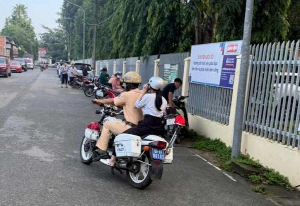 Sáng 27/6, trong ngày cuối thi tốt nghiệp THPT năm 2025, tại điểm thi trường THPT Long Phước, huyện Long Thành, lực lượng CSGT đang làm nhiệm vụ thì biết tin thí sinh Bùi Thị Anh Thư mang nhầm thẻ dự thi.