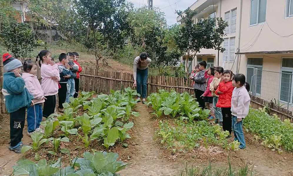 Một giờ học thực tế ở trường Mầm non Lạc Sỹ, huyện Yên Thủy, tỉnh Hòa Bình. Ảnh: Nhân vật cung cấp