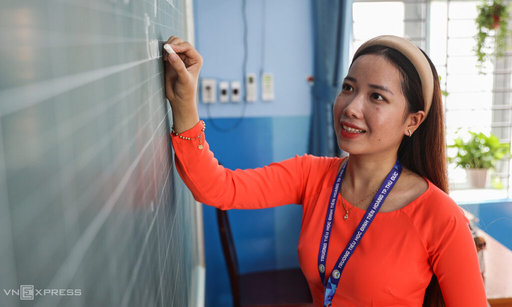 Giáo viên trường Tiểu học Đinh Tiên Hoàng, TP HCM, tháng 9/2023. Ảnh: Quỳnh Trần