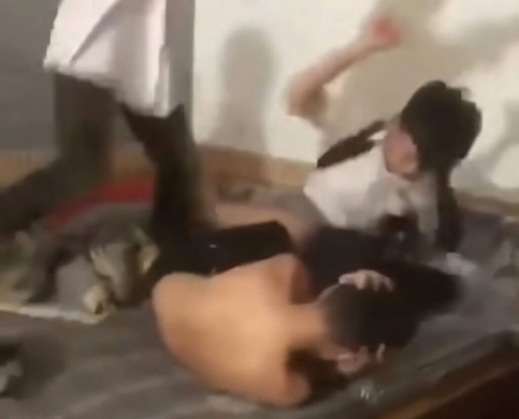 Hình ảnh nam sinh THCS Cẩm Phong bị bạn đánh tại nhà. Ảnh cắt từ video