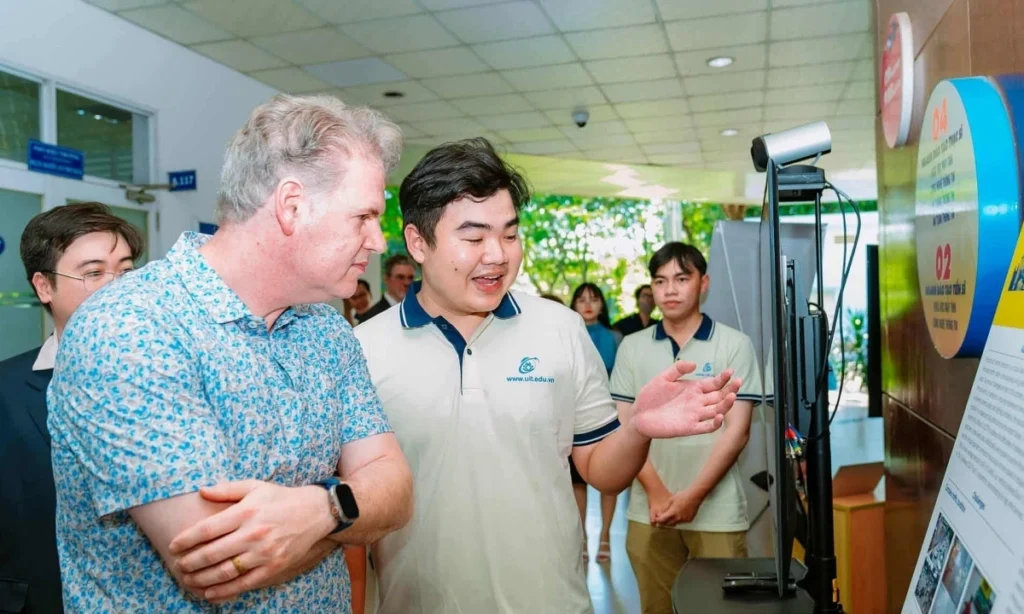 inh viên trường Đại học Công nghệ Thông tin gặp ông Keith Strier – Phó chủ tịch Tập đoàn Nvidia (ngoài cùng bên trái), tháng 4/2024. Ảnh: UIT