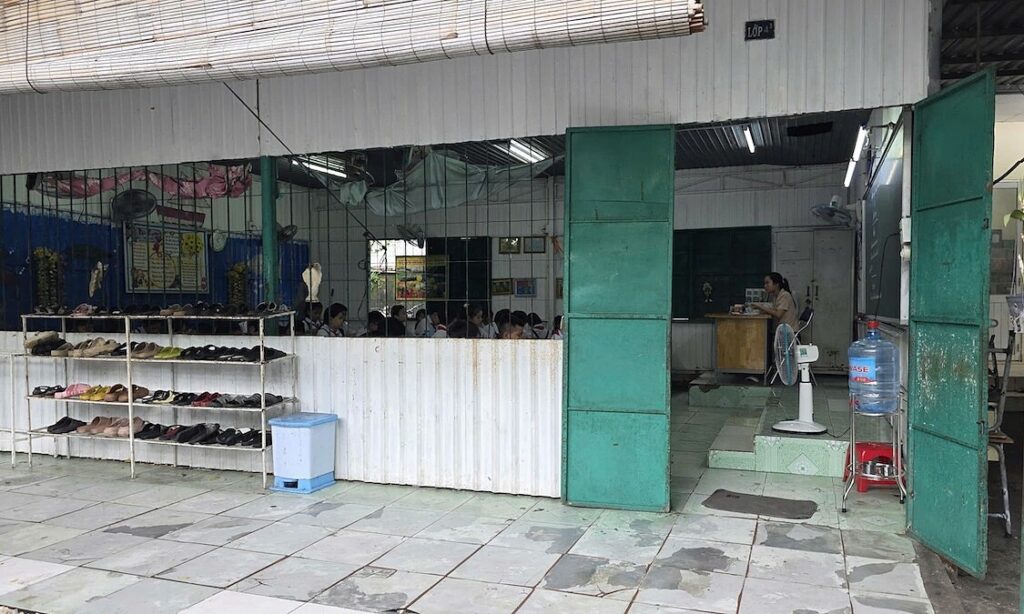Theo thầy Tài, việc xây phòng tạm là do khuôn viên nằm trong hành lang đường bộ, không thể xây dựng kiên cố. Trường cũng không huy động được kinh phí để cải tạo. Học sinh ở đây đa phần là con em công nhân.