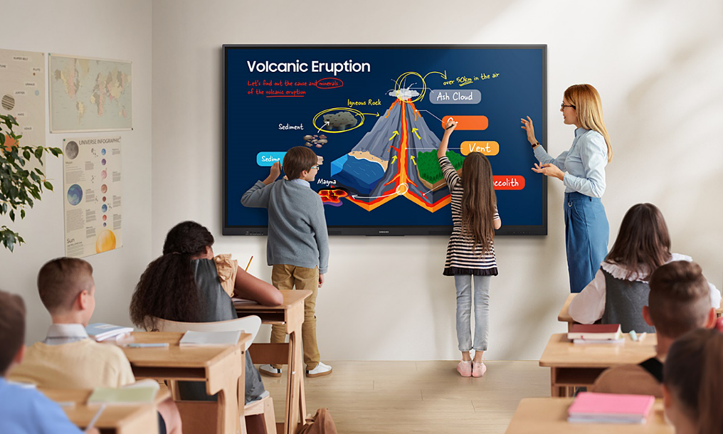 Học sinh tương tác với bảng thông minh của Samsung. Ảnh: Samsung