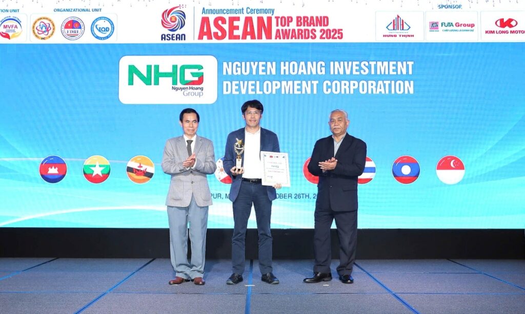Ông Bùi Quang Nam, Phó tổng giám đốc, đại diện Tập đoàn Nguyễn Hoàng nhận giải thưởng “Thương hiệu uy tín hàng đầu ASEAN 2025. Ảnh: Nguyễn Hoàng
