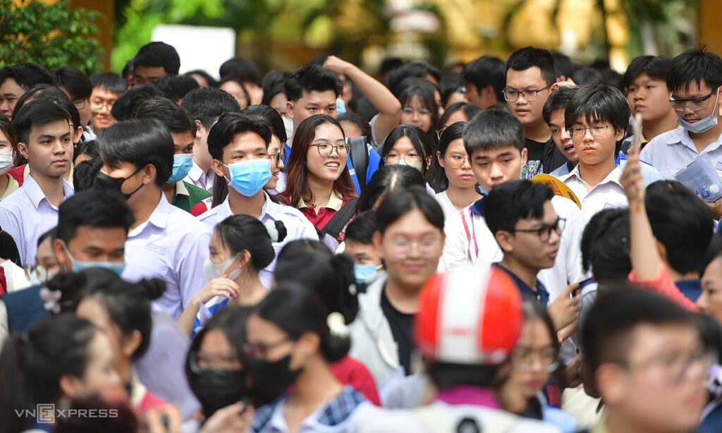 Các thí sinh ở điểm thi trường THPT Trưng Vương, phường Bến Nghé TP HCM. Ảnh: Thanh Tùng