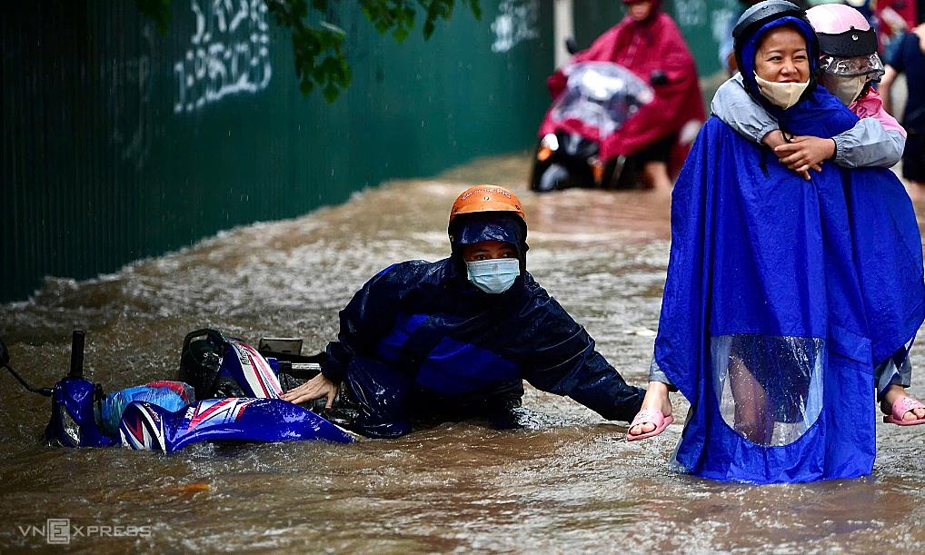 Tại Hà Nội, từ đêm 25 đến sáng 26/8, mưa dồn dập khiến lượng mưa nhiều nơi vượt 150-200 mm; riêng Thường Tín đạt hơn 160 mm chỉ trong 8 giờ. Hệ quả là hàng loạt tuyến phố nội thành như Nguyễn Trãi, Trường Chinh, Minh Khai, Nguyễn Xiển… ngập sâu, hàng trăm ôtô, xe máy chết máy giữa dòng nước.