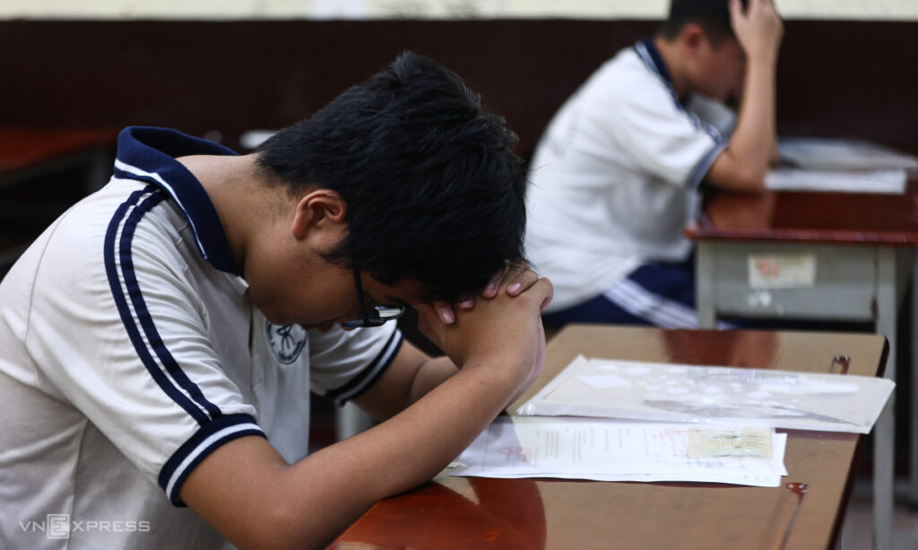 Thí sinh dự thi lớp 10 công lập TP HCM tại điểm thi THPT Trưng Vương, tháng 6/2025. Ảnh: Quỳnh Trần