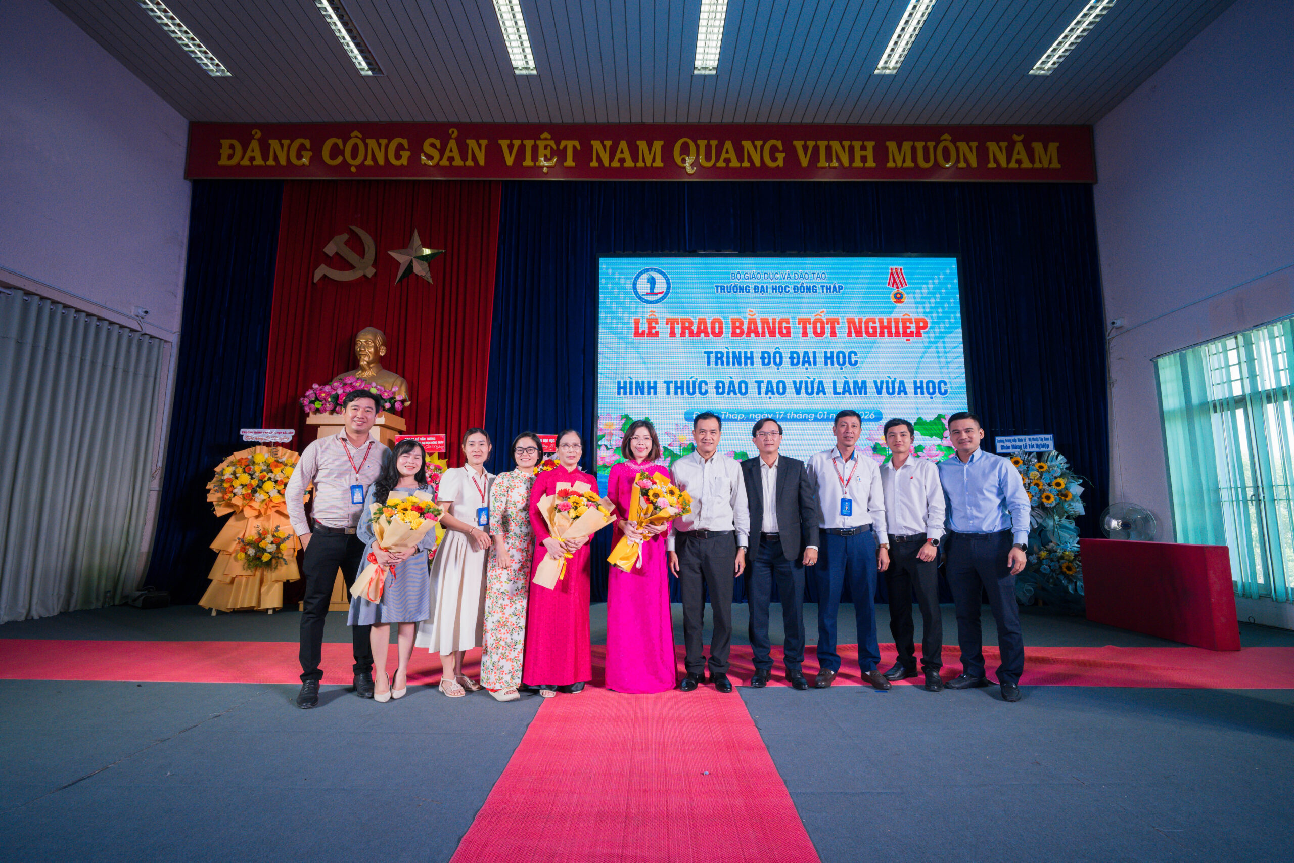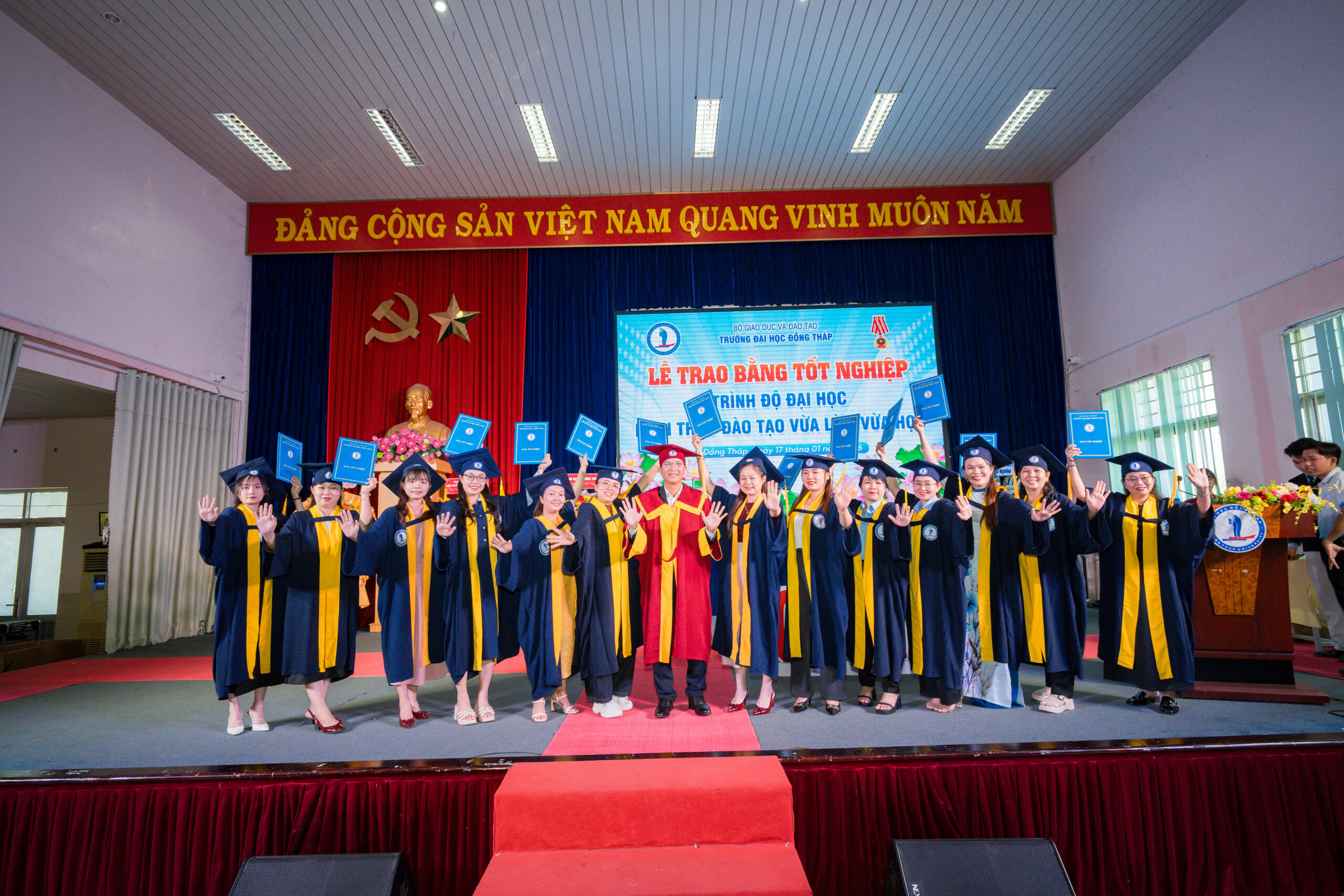 Ngày 17 tháng 01 năm 2026, tại hội trường Trường Đại học Đồng Tháp đã diễn ra Lễ trao bằng tốt nghiệp đại học hệ Vừa làm vừa học (VLVH) dành cho hơn 500 học viên thuộc các ngành Giáo dục Tiểu học, Giáo dục Mầm non, Mỹ thuật và một số ngành khác. Buổi lễ không chỉ là cột mốc đánh dấu sự trưởng thành của mỗi học viên, mà còn là khoảnh khắc đầy xúc động khi nhìn lại chặng đường học tập bền bỉ trong suốt nhiều năm.
